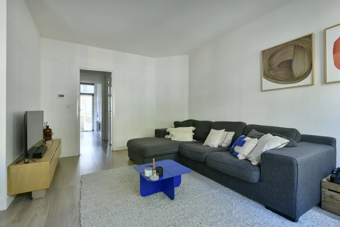 Sfeervol 3-kamerappartement (52 m²) op de eerste verdieping met zowel een zonnig balkon aan de voorzijde (westen) als aan de achterzijde. Dit goed ingedeelde appartement heeft een sfeervolle woonkamer met een aparte keuken en twee slaapkamers aan de achterzijde.