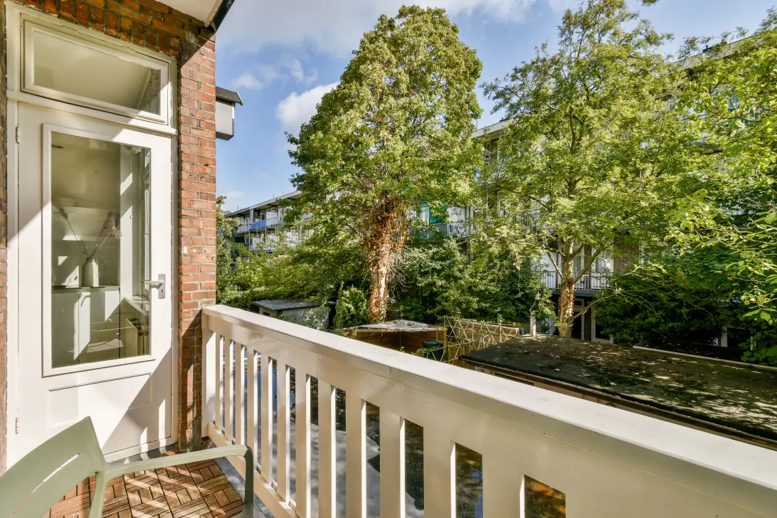 Charming and bright 54 m² apartment on the first floor with a private entrance and balcony. The property is on freehold land and situated on a green street in the popular Admiralenbuurt neighborhood, between Rembrandtpark and Erasmuspark.