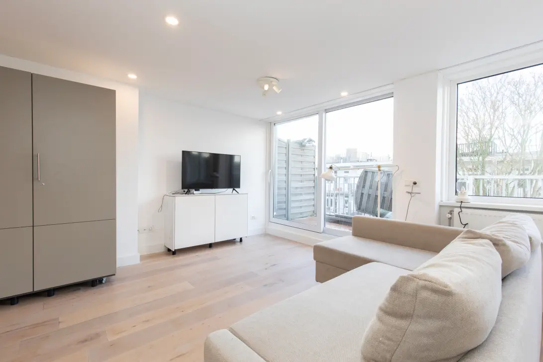 Het appartement is perfect gelegen in een rustige straat in de populaire De Baarsjes op steenworp afstand van het Rembrandtpark en het Erasmuspark. In de buurt zijn diverse mogelijkheden voor de dagelijkse boodschappen zoals Albert Heijn, Dirk van den Broek, Etos en Kruidvat. De lokale groente- en visboer en slager zijn ook nabij in de Jan Evertsenstraat. Daarbij zijn er in de directe nabijheid veel leuke winkels, restaurants en cafés. Voor het nodige vertier bent u bijvoorbeeld binnen 5 fietsminuten in de bruisende Jordaan. Voor sport en ontspanning zijn het Erasmuspark, het Rembrandtpark en Sportplaza Mercator (met zwembad) op steenworp afstand gelegen. Door de centrale ligging zijn De Hallen, het Westerpark, het Vondelpark en het stadscentrum ook binnen handbereik.