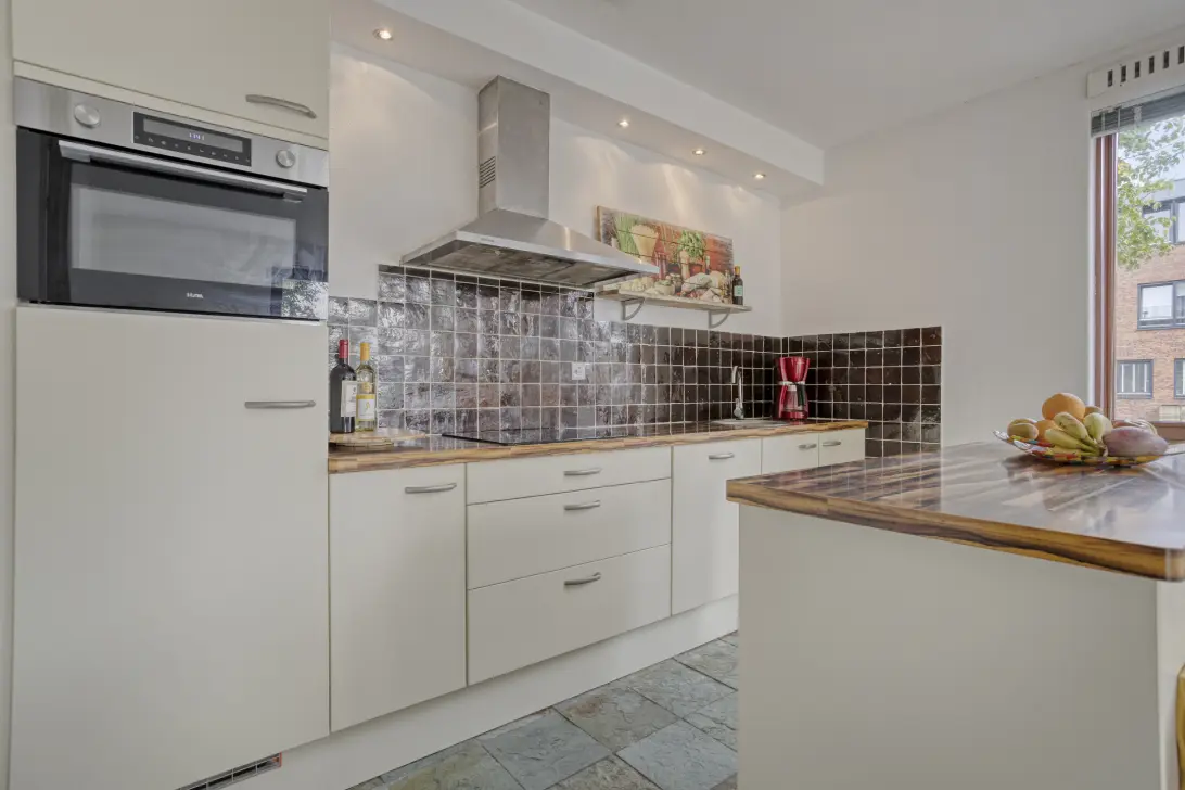De gehele begane grond beschikt over een tegelvloer met vloerverwarming. De bijzondere woonkeuken met eiland nodigt uit om met vrienden en familie gezellig samen te eten en te drinken.