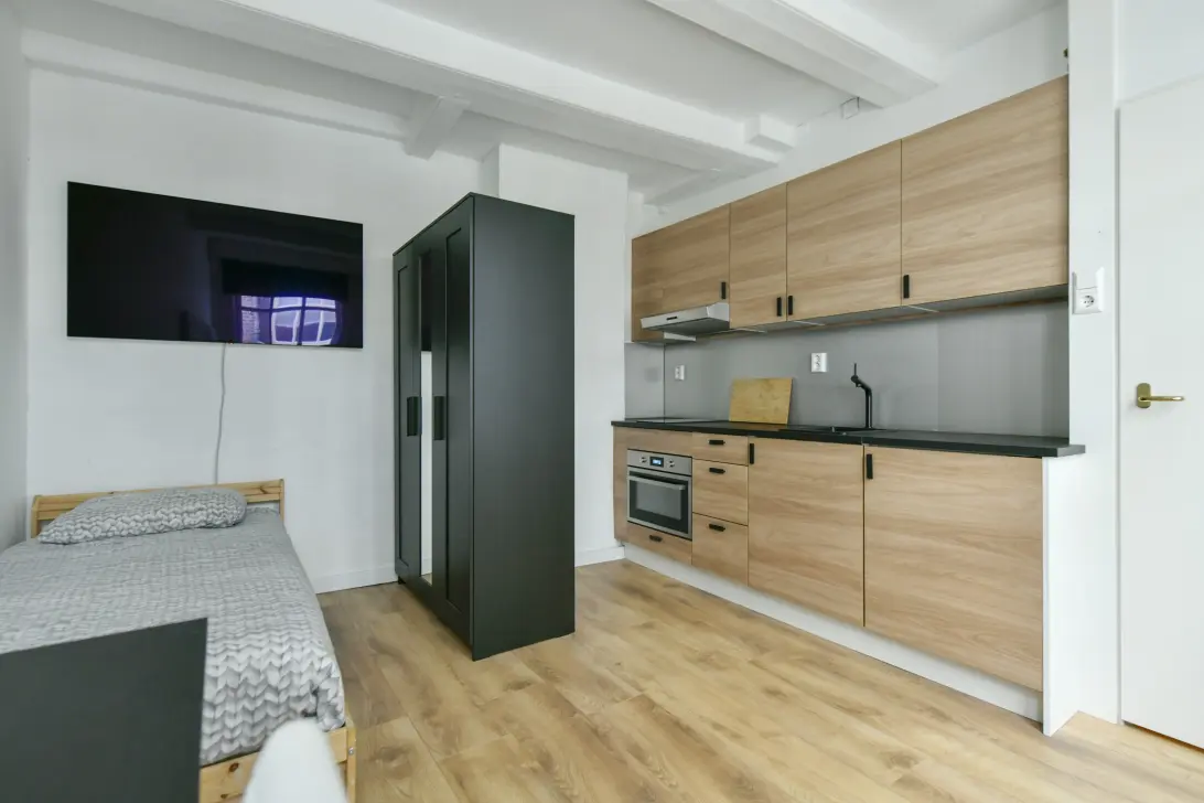 We offer this 19m² studio apartment on Oudezijds Voorburgwal. The studio has been recently renovated and features a new kitchen and bathroom. It's ready to move into. It's located in a historic building dating from 1705, a national heritage site, and situated on freehold land.