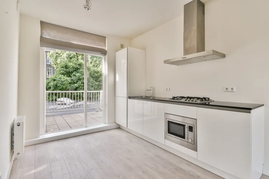 Dit appartement bevindt zich in het hart van het levendige Oud-West, op steenworp afstand van het groene Vondelpark. De buurt wordt gekenmerkt door een breed aanbod aan gezellige eetgelegenheden, zoals de populaire Foodhallen, sfeervolle cafés, ambachtelijke traiteurs en stijlvolle woonwinkels. Sportfaciliteiten, zoals de David Lloyd-club, liggen letterlijk om de hoek. Voor dagelijkse boodschappen zijn meerdere supermarkten makkelijk te voet bereikbaar. Binnen enkele minuten fietsen bereik je het culturele centrum van Amsterdam, waaronder het Museumplein, Leidseplein, de 9 Straatjes en het chique Oud-Zuid. De locatie is bovendien uitstekend verbonden met het openbaar vervoer en biedt een snelle toegang tot de A10, waardoor alle delen van de stad gemakkelijk bereikbaar zijn.