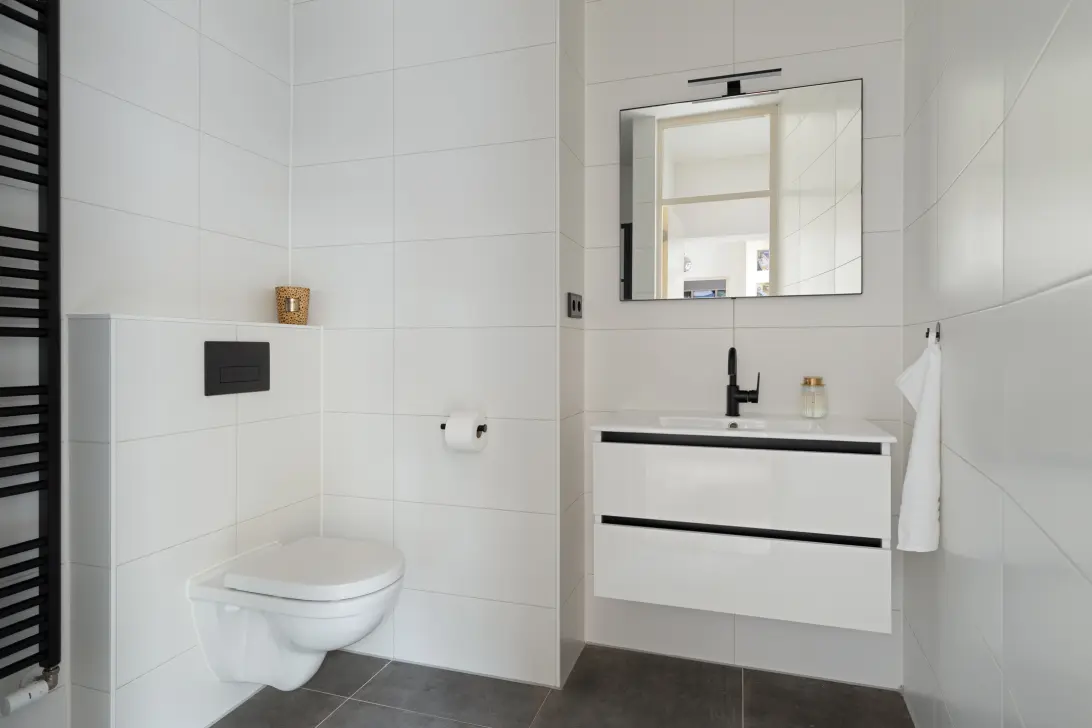 De woning beschikt over een tweede slaapkamer aan de achterzijde, grenzend aan de tuin. Deze ruimte is met vergunning uitgebouwd en in 2021 volledig gerenoveerd. De badkamer is centraal gelegen en voorzien van een wastafel en douche. Daarnaast is er een separate berging aanwezig, bereikbaar vanuit de woonkamer.