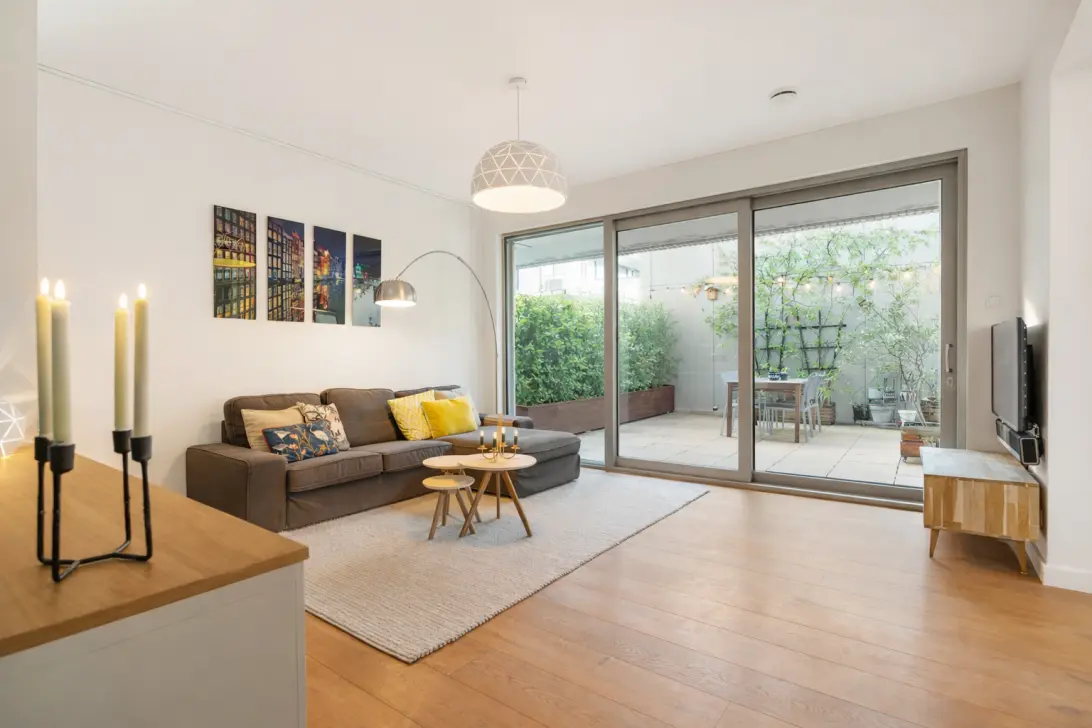 The generous living room with open-plan kitchen is fully equipped with, among other things, a Quooker, convection oven, warming drawer, microwave and dishwasher. There is ample space for a large dining table, perfect for entertaining. From the living room you have access to the garden, where you can enjoy long summer evenings.