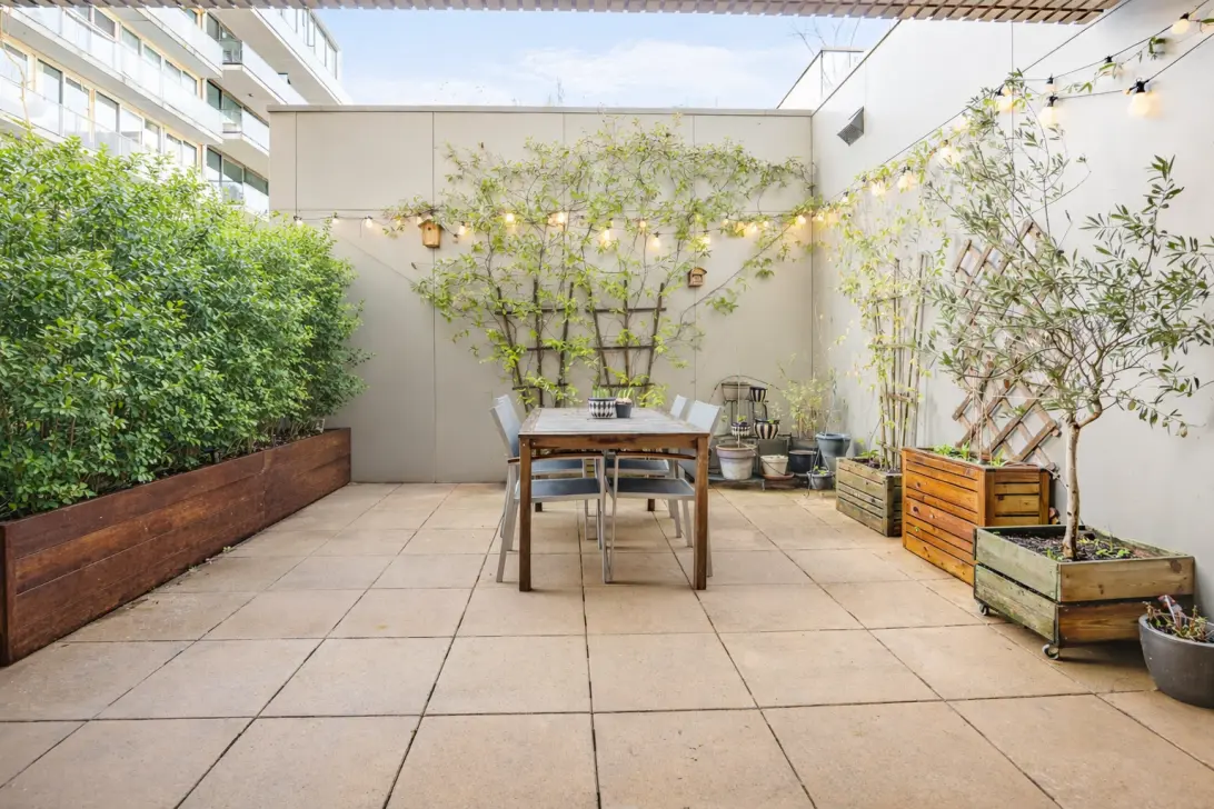 The apartment has three bedrooms, each with floor-to-ceiling windows providing plenty of natural light. The master bedroom and the smaller bedroom also offer direct access to the spacious balcony.