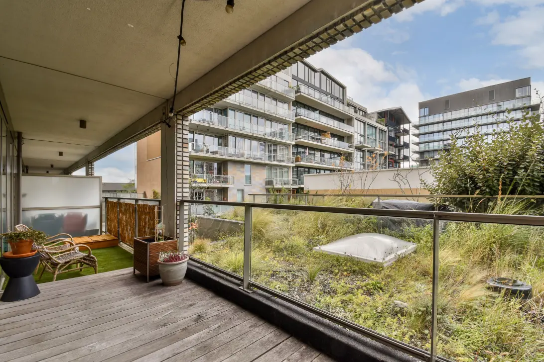 Heerlijk ruim en licht hoekappartement van circa 106 m² met 3 slaapkamers, hoge plafonds, een eigen parkeerplaats én een terras van maar liefst 43 m². Door de verdiepingshoge ramen met diverse balkondeuren en een schuifpui én doordat het ruime, overdekte terras grenst aan de woonkamer en de woonkeuken is het echt een verlenging van je leefruimte.
