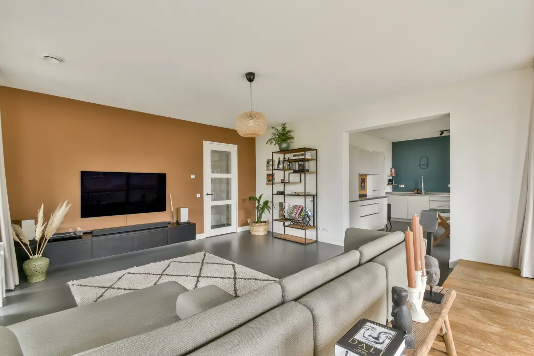 De royale woonkamer heeft een speelse indeling door het lichte niveauverschil en grote, verdiepingshoge ramen met meerdere balkondeuren en een schuifpui. Zodra je deze opent, lopen de woonkamer en het grote, overdekte terras (43 m²) naadloos in elkaar over – perfect voor lange zomeravonden en etentjes buiten. De moderne, halfopen woonkeuken biedt volop werk- en bergruimte en grenst aan een handige bergkast met wasmachineaansluiting.