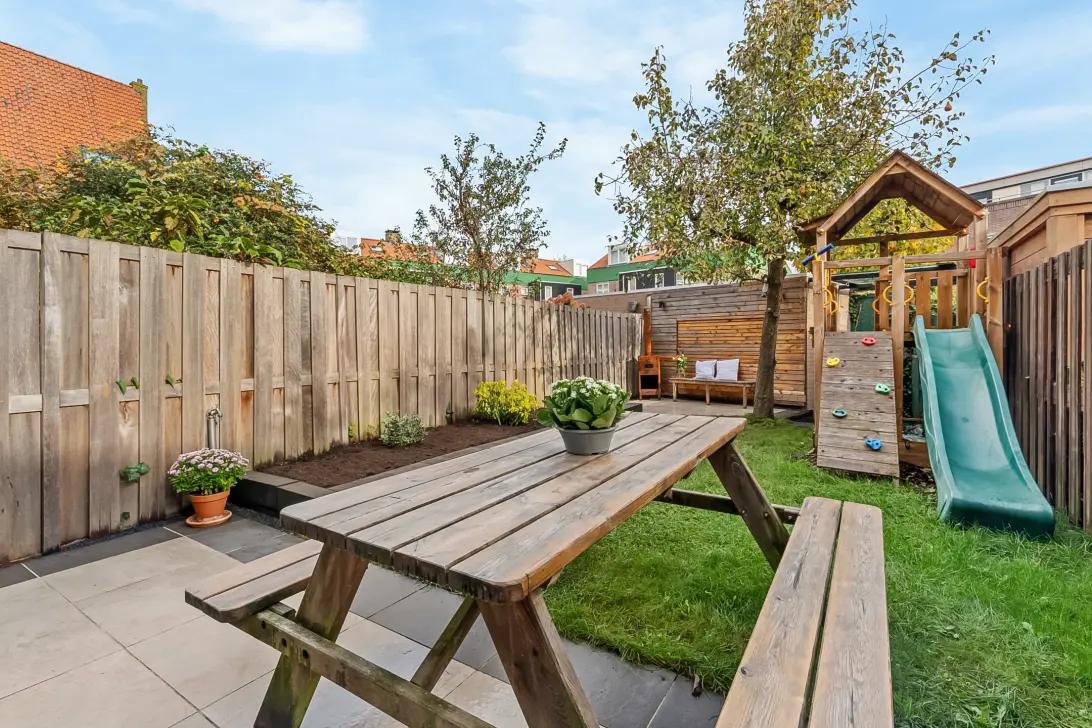 - Zonnige tuin met privacy: Via de uitbouw met een gevelbrede schuifpui (2024) stap je zó de verzorgde tuin in, perfect gelegen op het noordoosten. Hier vind je een vrijstaande stenen berging en een achterom.