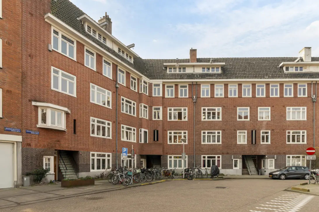 A bright and spacious apartment overlooking the water, located in one of Amsterdam’s most enjoyable neighborhoods: welcome to Paramariboplein. This charming apartment of approximately 79 sqm is situated along the Kostverlorenvaart in the popular De Baarsjes district and features three bedrooms, a sunny west-facing balcony, and two generous storage rooms. Here you can enjoy peaceful living by the water, while the city and the greenery of Rembrandtpark and Vondelpark are just around the corner.