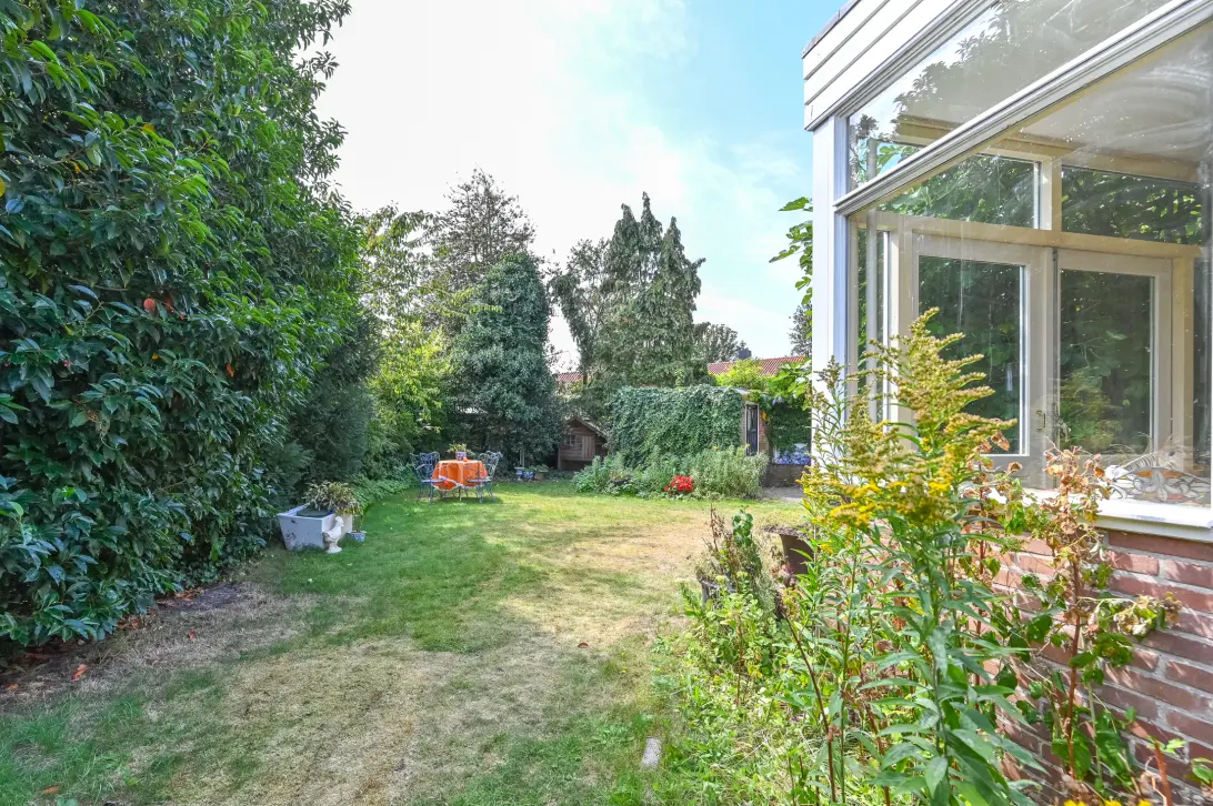 Buitenruimte: fantastische voor-, zij- en achtertuin met veel privacy en de hele dag zon! Direct achter de woning bevindt zich een kleine berging v.v. elektra. In de zijtuin bevindt zich nog een grote berging (voormalige garage) met een pad naar de straat.