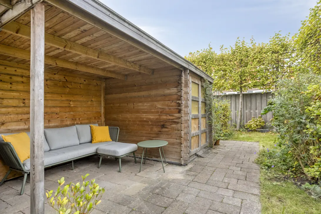 Tuin: in de diepe achtertuin vind je een overkapping en een schuur. De achtertuin is tevens te bereiken via het zijpad.
