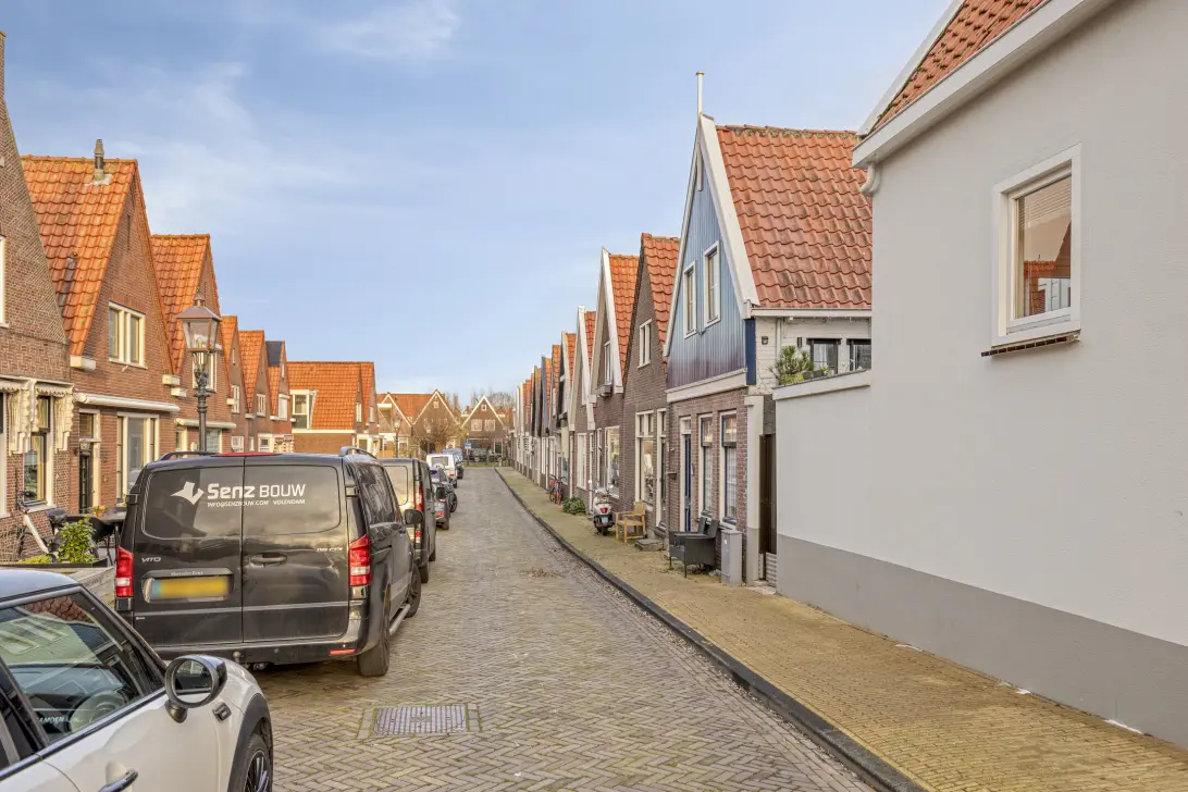 Het woonhuis ligt in het hart van Volendam. Zodra je voet buiten de deur zet, proef je de sfeer van de oude kom. De haven en de dijk met diverse horecagelegenheden liggen op loopafstand. Ook voor een grote verscheidenheid aan winkels in het centrum hoef je maar een klein stukje te wandelen. De bushalte met snelle verbindingen naar Amsterdam, Hoorn en Purmerend ligt op ca. 100 meter.