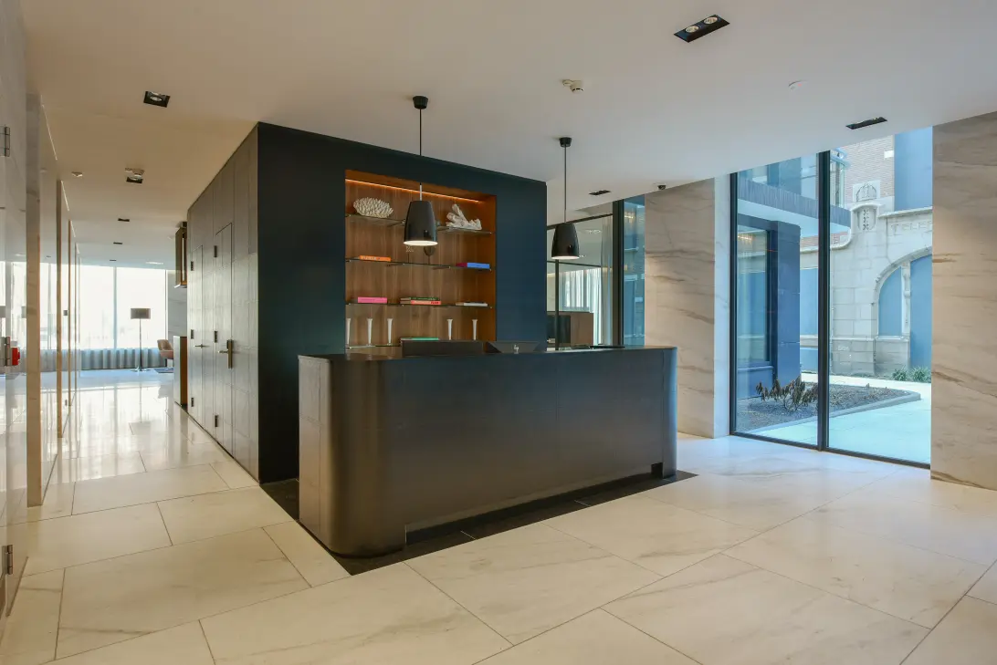 De Hooch heeft Nederlands’ meest exclusieve lobby; in de 250 m² lobby bevindt zich een bar, een luxe lounge met open haard en een vergaderruimte. De conciërge van De Hooch is in de lobby gehuisvest en fungeert als een moderne butler. Deze kan zorgdragen voor de ontvangst van gasten, maar ook voor onder meer pakketontvangst, stomerijverzoeken en uitlaatservice voor huisdieren. Indicatie van de servicekosten voor de woning: circa € 728 p.m.