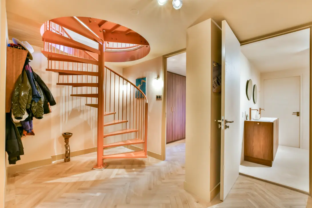 Eigen toegang vanaf de straat. De huidige bewoners gebruiken de entree op de begane grond, maar op de eerste verdieping is er nog een tweede toegangsdeur naar de woning.