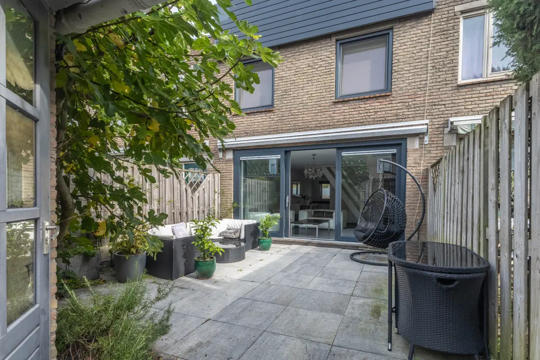 - Zonnige achtertuin op het zuidwesten met berging en achterom.