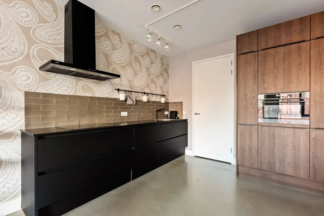 -In de woning ligt een gietvloer met vloerverwarming.