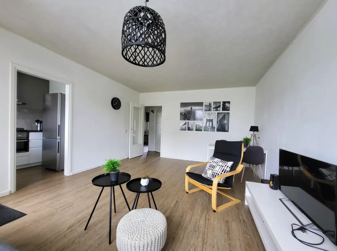 You reach the second floor by elevator or stairs, where the apartment is located. You enter into a hallway with the meter cupboard, which leads into the central hall from which all rooms are accessible. The spacious living room is wonderfully bright thanks to the large windows and offers an unobstructed view. Adjacent is the semi-open kitchen, which is practically designed and equipped with necessary appliances. The apartment has two bedrooms and a neat bathroom with a shower, sink, and a tidy space for a washing machine and dryer. The toilet is separate and located next to the bathroom. In the basement of the complex, there is a spacious storage room.