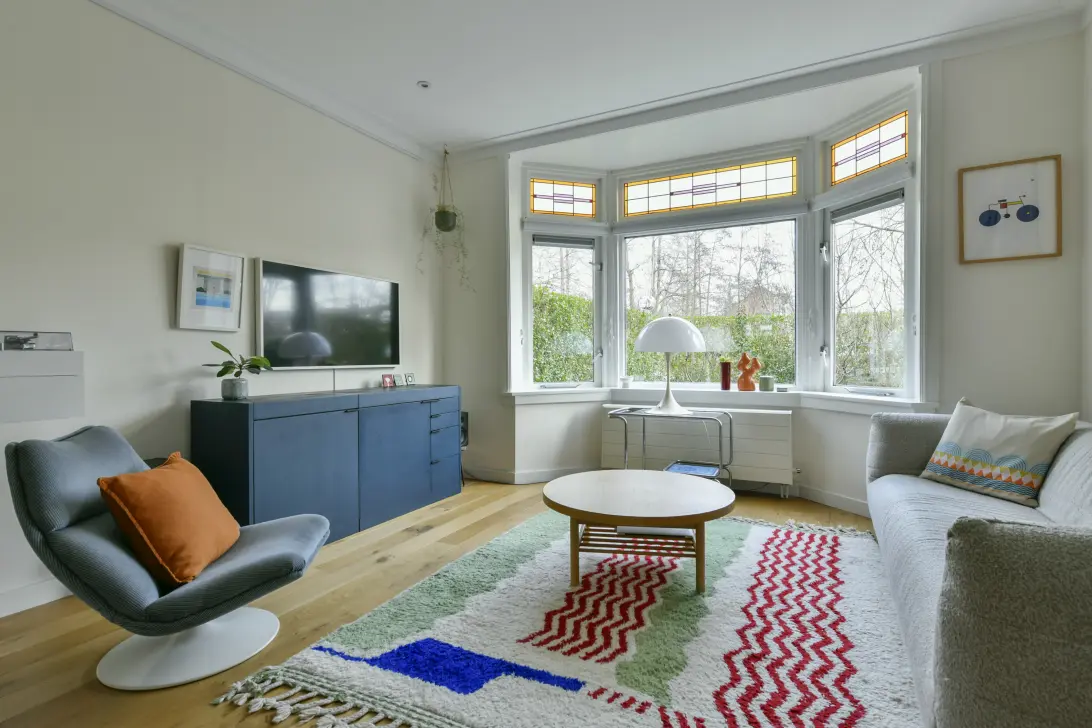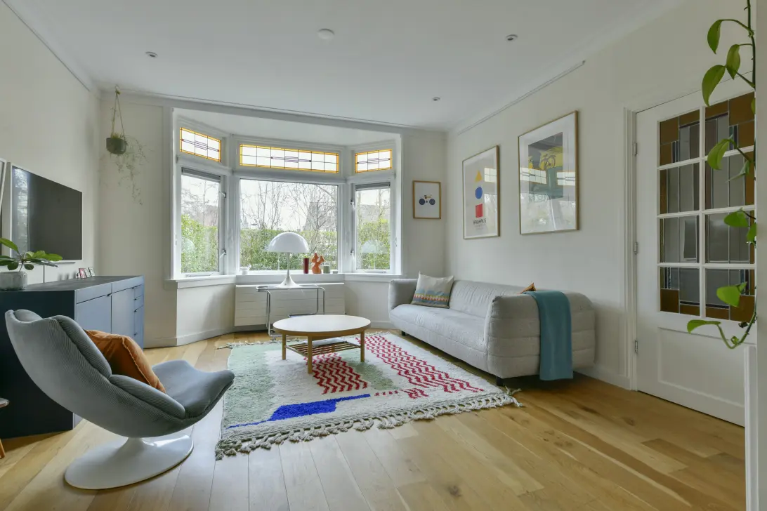 Wat gebleven is? De karakteristieke details waar u verliefd op wordt: glas-in-lood ramen, de sfeervolle erker en de originele en-suitedeuren. Wat is toegevoegd? Ruimte, licht en een hoogwaardig afwerkingsniveau. Met een zonnige tuin op het westen en Amsterdam-Watergraafsmeer op steenworp afstand, is dit een heerlijk appartement.
