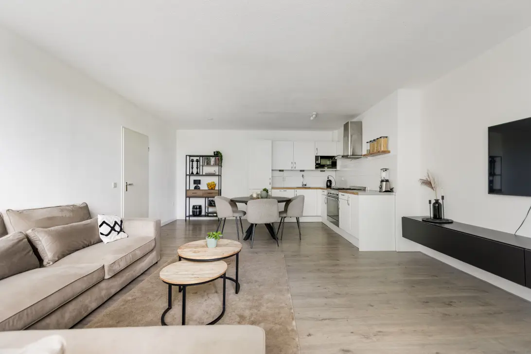 - Riante, lichte woonkamer voorzien van laminaatvloer