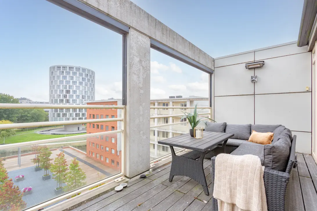 - Groot en zonnig terras op het zuiden met uitzicht op de binnentuin.