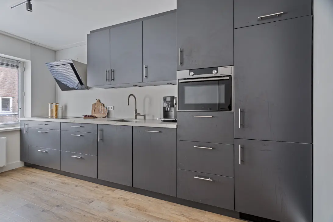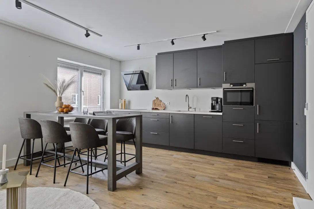 Here you get access to 100 m2 of living space. Optimal comfort and quality! But there is more. There are 2 bathrooms and 2 kitchens. Also, the apartment has 4 bedrooms. The 2 floors and corner location make it a special home!