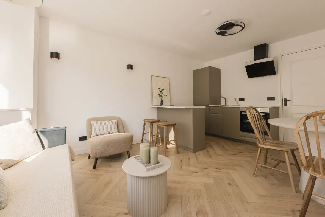 De nieuwe keuken is voorzien van moderne inbouwapparatuur en slimme opbergruimte, perfect voor kookliefhebbers. De badkamer is strak en eigentijds ingericht met luxe sanitair, een inloopdouche en stijlvolle afwerking. Alles is met zorg vernieuwd, zodat jij alleen nog maar je meubels hoeft neer te zetten.