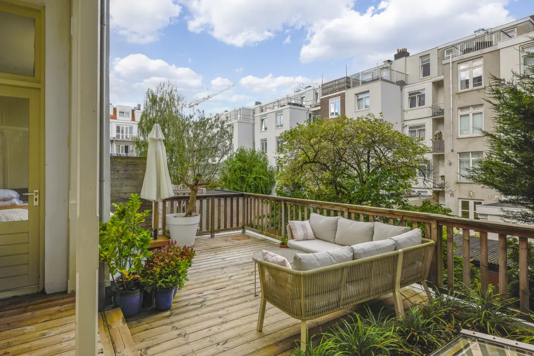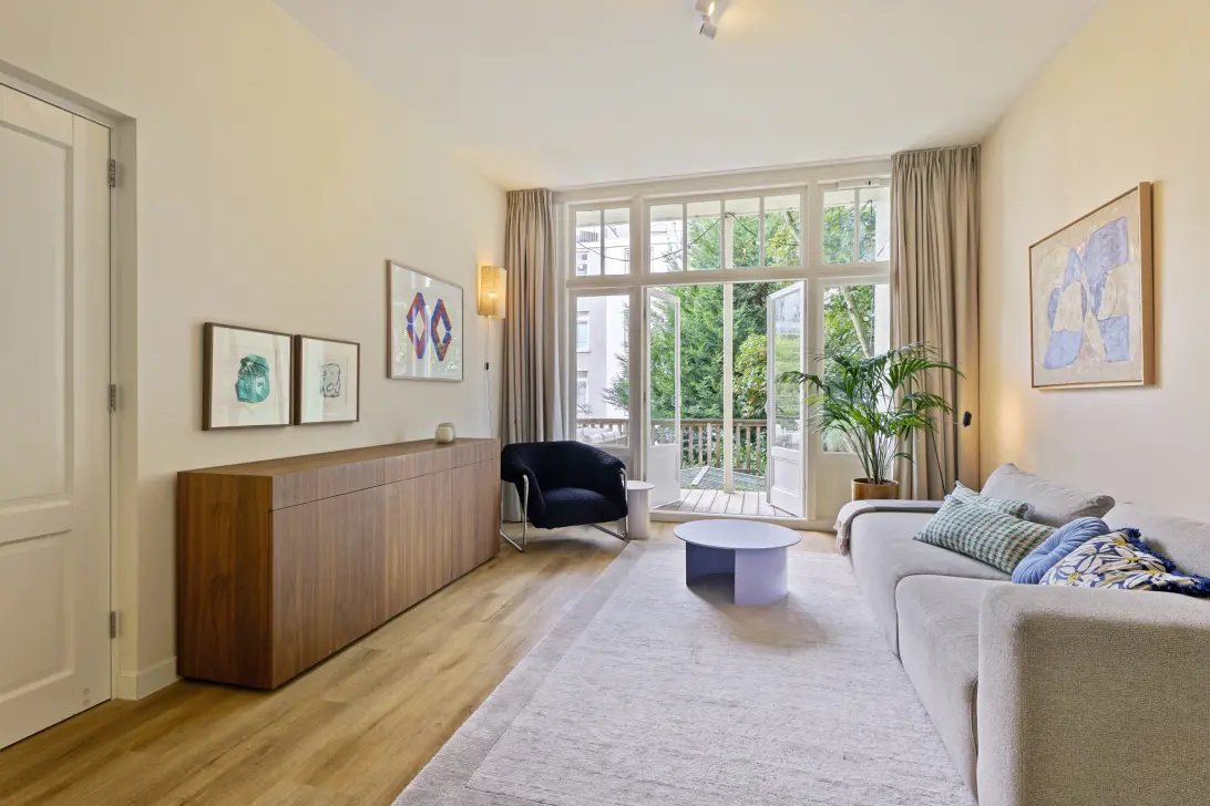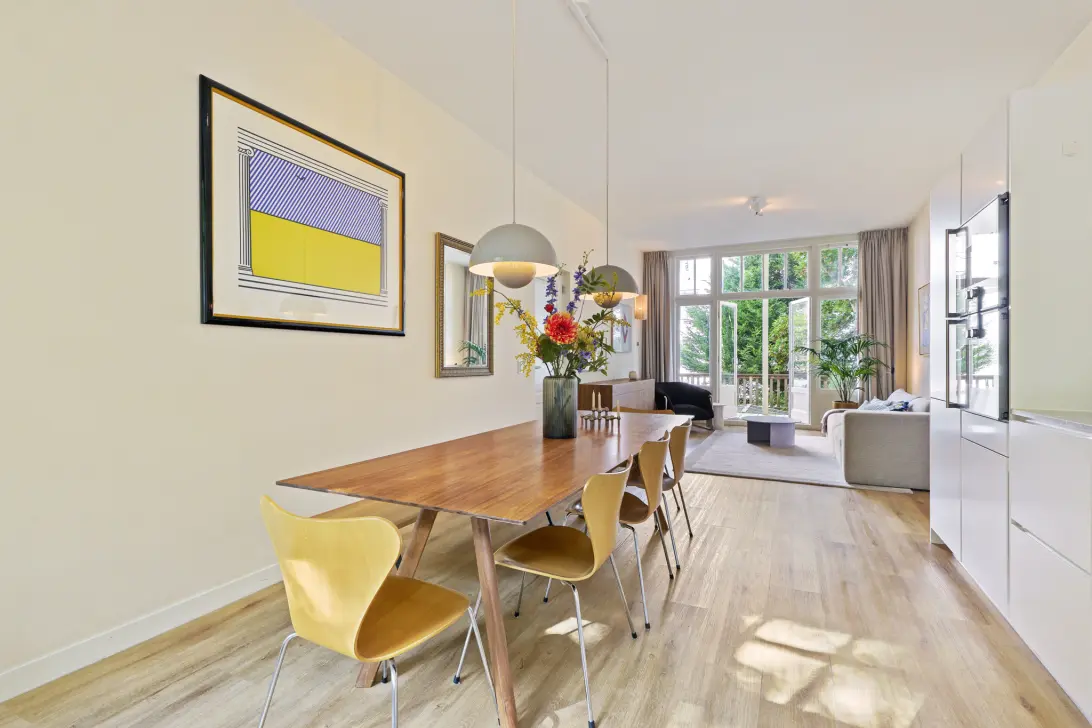 Bijzonder licht en sfeervol vierkamerappartement van 82m² met een heerlijk dakterras van ruim 23m². Dit verfijnde appartement beschikt over een elegante doorzonliving met een luxe open designkeuken, naadloos verbonden met een royaal dakterras dat als een natuurlijk verlengstuk van de leefruimte fungeert. De woning heeft drie goed bemeten slaapkamers en luxe sanitaire ruimtes. De huidige eigenaren hebben het appartement met veel gevoel voor stijl en kwaliteit gerenoveerd, waarbij gekozen is voor een harmonieus palet van natuurlijke tinten en het gebruik van hoogwaardige materialen. Door de gehele woning ligt een PVC vloer met geïntegreerde vloerverwarming, wat het wooncomfort aanzienlijk verhoogt. De hoge plafonds en royale raampartijen zorgen voor een uitzonderlijk lichte en ruimtelijke sfeer.