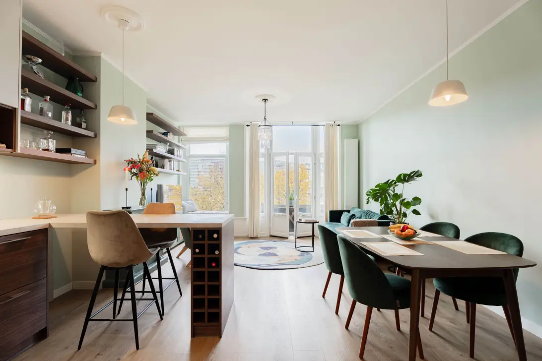 In a beautiful Art Deco building, located on freehold land right in the heart of Amsterdam, we are pleased to offer a bright 2-room apartment with a lovely balcony and a unique, unobstructed view over the water. The property was largely and tastefully renovated in 2021, preserving and incorporating many authentic details alongside custom-made elements such as the kitchen, various built-in cabinets, and a bedroom wardrobe. This is a truly wonderful place to call home!