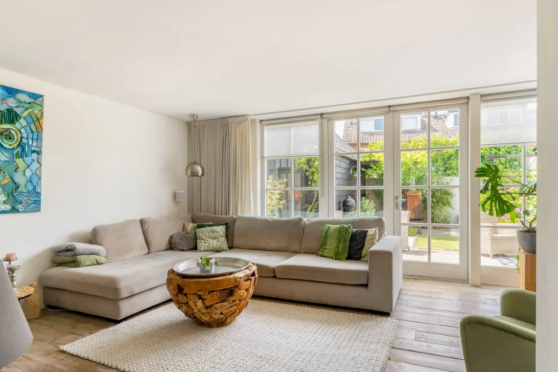 Bij binnenkomst tref je een gezellige en lichte woonkamer, afgewerkt met een warme steigerhouten vloer. De woonkamer is door middel van een vaste apothekerskast, verdeeld in twee ruimtes. Aan de voorzijde van de woning bevindt zich het knusse eetgedeelte. De ruime keuken is voorzien van inbouwapparatuur zoals een oven, vaatwasser en koelkast. Aan de achterzijde van de woning is de uitgebouwde woonkamer gesitueerd. In dit gedeelte bevindt zich het zitgedeelte en een hoekje waar een thuiswerkplek of zithoekje gecreëerd kan worden. Middels de openslaande deuren bereik je vanuit de woonkamer de zeer verzorgde tuin. Door de gunstige ligging van de tuin op het westen geniet je bijna de hele dag van de zon. In de tuin bevindt zich een volledig opgeknapt tuinhuis. Deze is volledig geïsoleerd en tevens voorzien van vloerverwarming, een eigen cv-installatie en zonnepanelen. In het tuinhuis is ook een keuken aanwezig en een vliering. Perfect als werkplek, atelier, gastenverblijf of woonkamer voor tieners. Daarnaast beschikt de woning over een handig fietsenhok, ideaal voor het veilig droog stallen van fietsen.