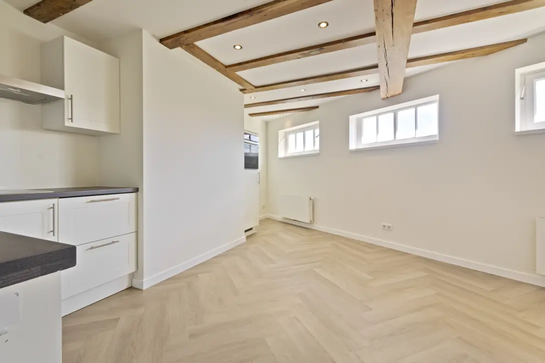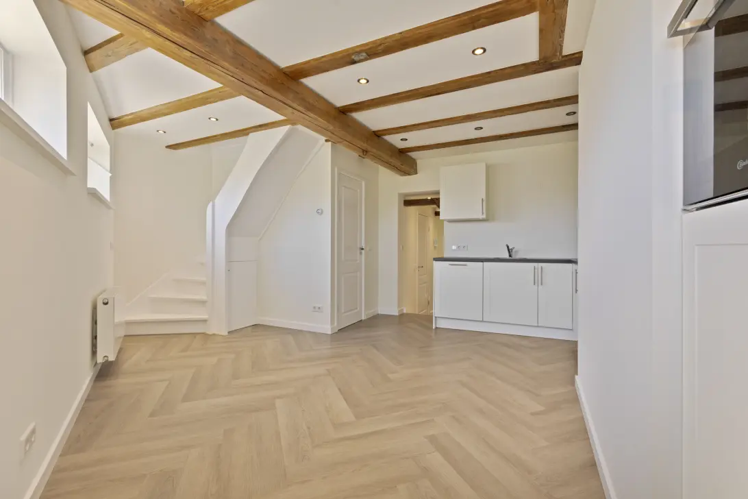 Via het nette gemeenschappelijke trappenhuis bereikt u op de derde verdieping de entree van de woning, met ruimte voor jassen en opbergruimte. Een trap leidt naar de vierde verdieping waar u binnenkomt in de gang. Vanuit hier bereikt u de lichte woonkamer met moderne open keuken. Aan de achterzijde vindt u de eerste slaapkamer en een separaat toilet. Aangrenzend aan de woonkamer ligt de badkamer met wastafel en douche.