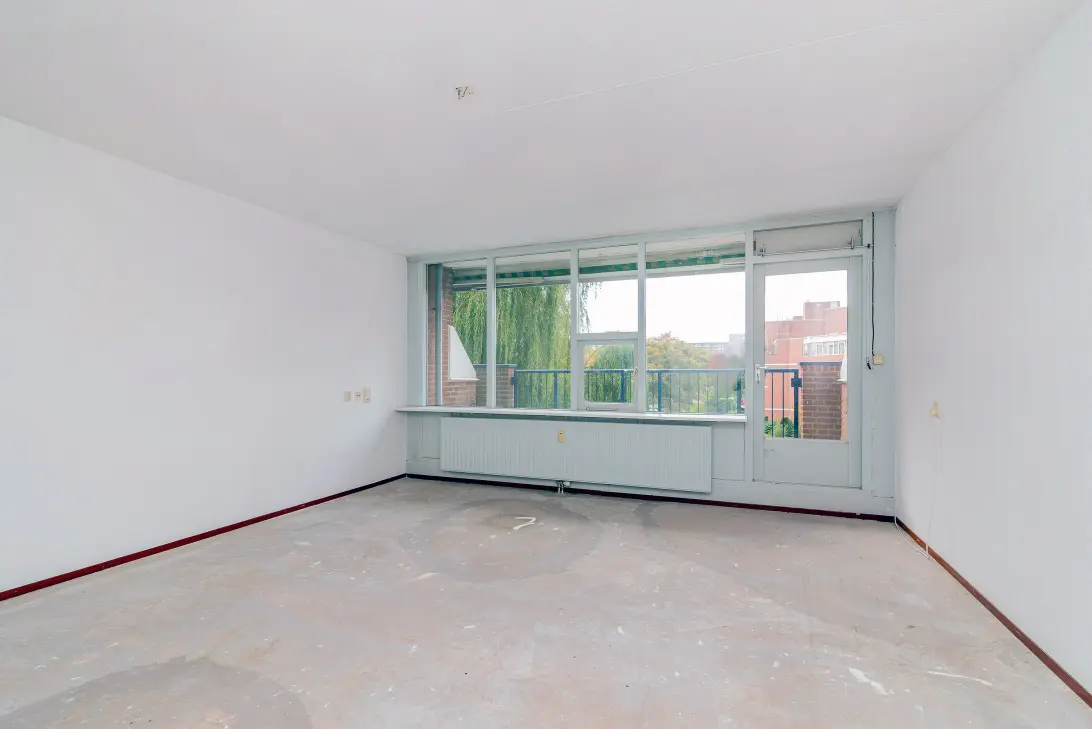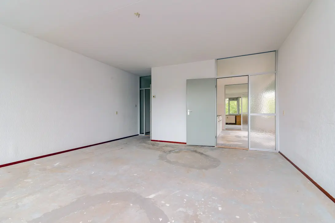 De lichte woonkamer vormt het hart van de woning en biedt volop ruimte voor een comfortabele zit- én eethoek. Dankzij de hoekligging valt er de hele dag door prettig daglicht binnen. De dichte keuken is verrassend licht en biedt voldoende ruimte om naar eigen smaak te moderniseren. De badkamer is eenvoudig maar netjes en voorzien van een douche, wastafel en aansluiting voor de wasmachine. Het separate toilet bevindt zich in de hal.
