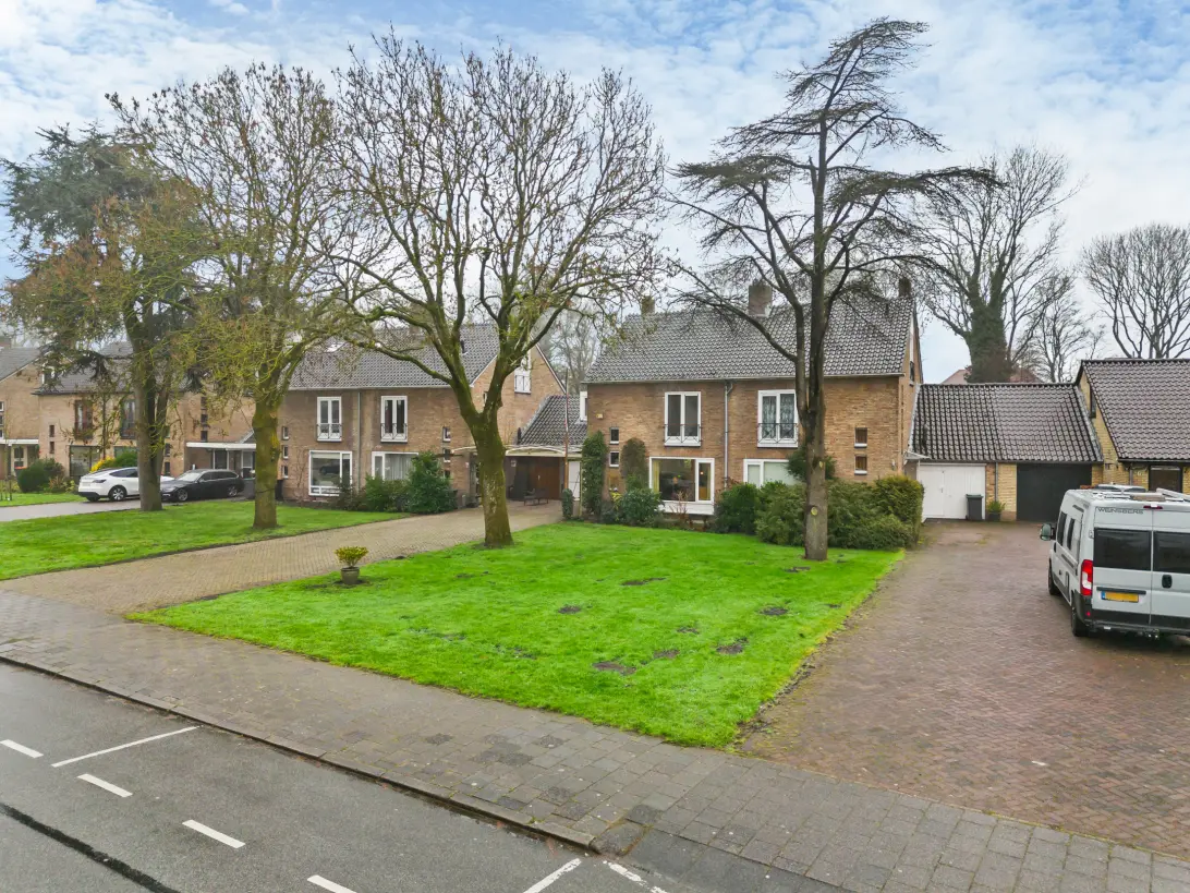 De woning heeft een verzorgde voortuin met carport, zodat u uw auto droog en op eigen terrein kunt parkeren. Voor de tuin ligt een brede groenstrook die eigendom is van de gemeente. De gemeente gedoogt het gebruik als oprit van het gedeelte dat vóór de garage is gelegen.