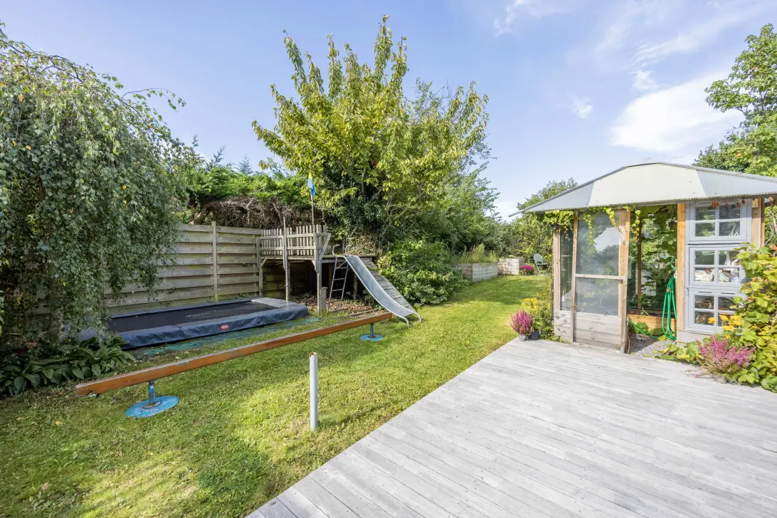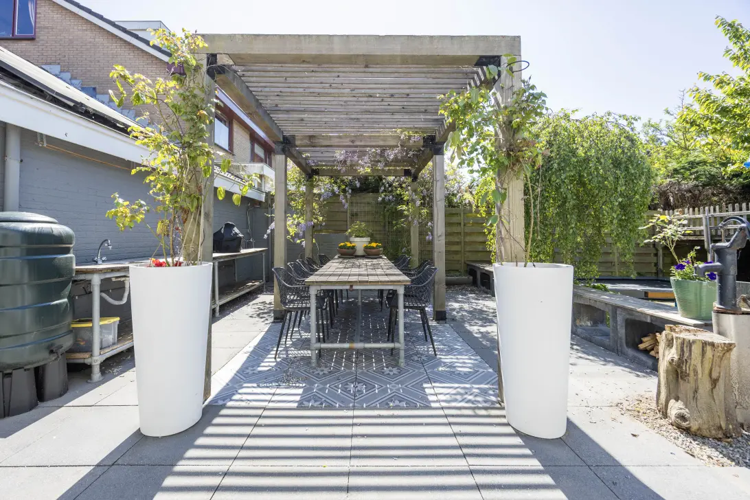 Wat een fijne tuin! Naast een voortuin is er een zij- en achtertuin met hier ruimte voor ontspanning, spelen, het verbouwen van je eigen groente en genieten in de zon. Er is een extra strook grond in gebruik aan de achterzijde waardoor nog meer privacy!
