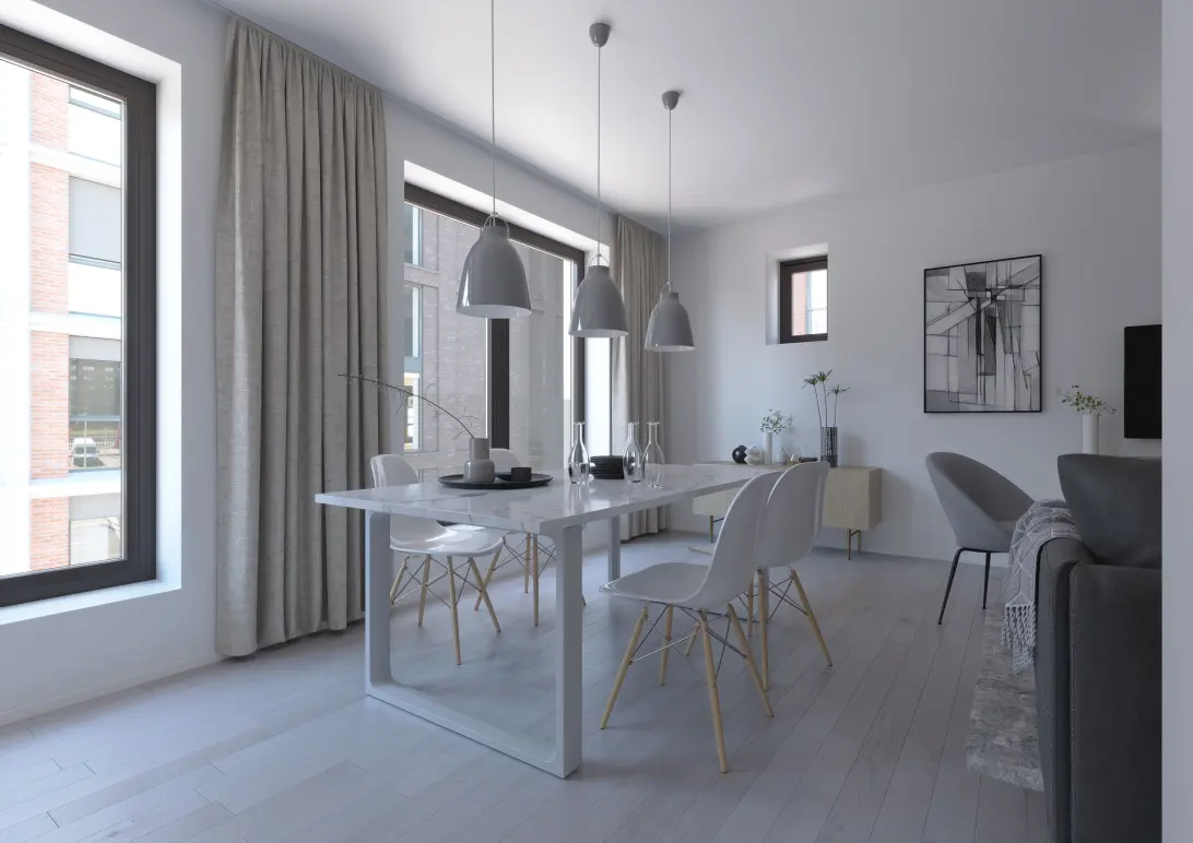De architectuur verbindt het omliggende industriële erfgoed met hypermodern woongenot. Studio’s, twee- en driekamerappartementen in het luxe segment verdelen zich over de verschillende woongebouwen. Deze schikken zich bovenop de parkeergarage met een gezamenlijke én separate bergingen rond een weelderige binnentuin. Zo beschikt elk appartement over berging.