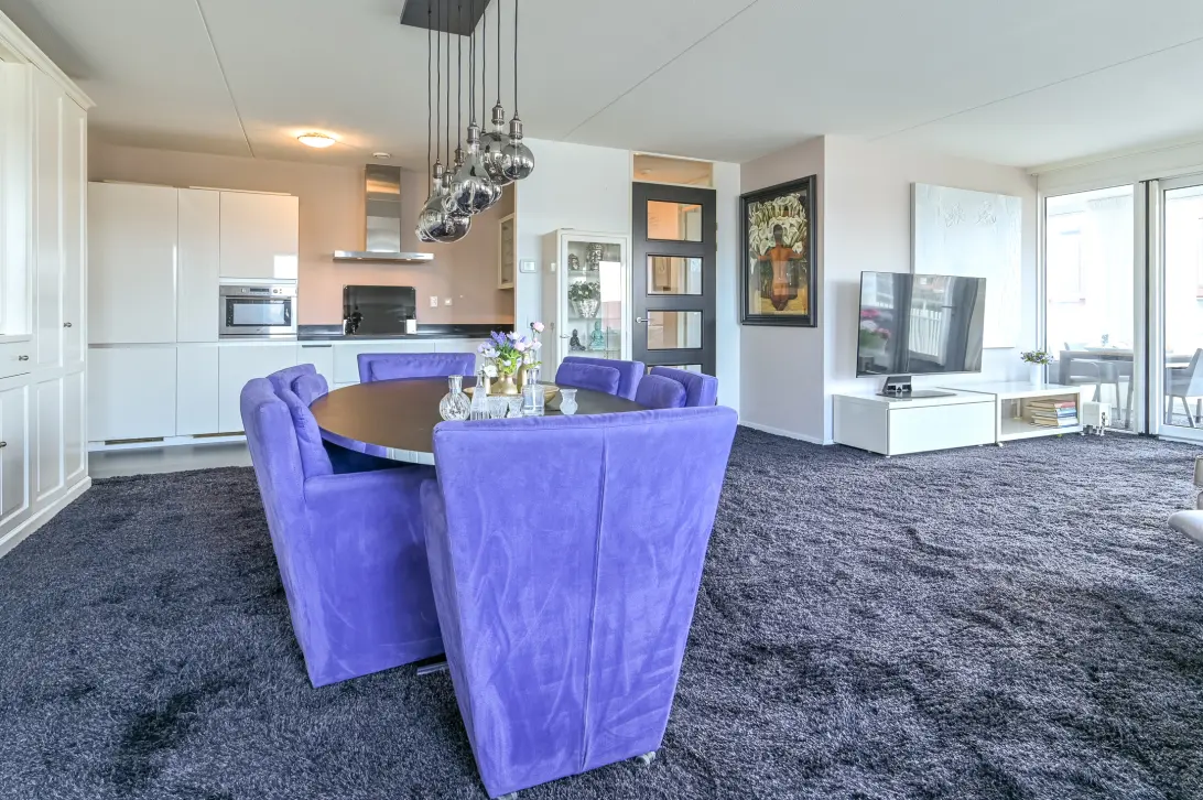 Mooi, op de westkant gelegen, royaal 3-kamerappartement (met 112m2 woonoppervlakte een van de grootste typen binnen het complex!) met een zeer groot balkon van maar liefst 20m2 op de westkant van het appartement , welke afsluitbaar is middels in segmenten opgedeelde glazen raamdelen, waardoor in alle jaargetijden comfortabel buiten gezeten kan worden. Het is ook een perfect "verlengstuk" van de living. In het gehele appartement is ook zeer veel lichtval dankzij de aanwezigheid van vele raampartijen.