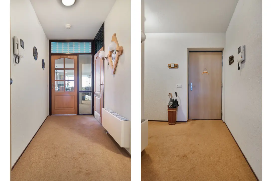 Via de lift bereikt u de 7e verdieping, waar de entree van de woning zich bevindt. De gemeenschappelijke hal deelt u met slechts twee andere appartementen. Hier bevinden zich tevens de meterkasten.