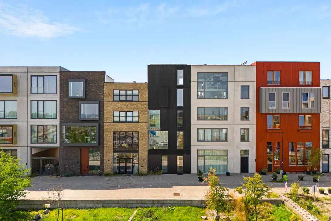 - Hypermodern 15 meter hoog pand met 5 woonlagen en een spectaculaire aluminium gevel