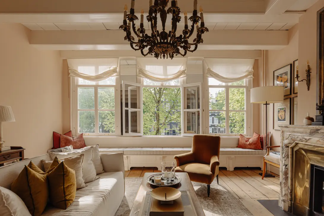 THE CORNER HOUSE | Living at Raphaelplein, one of the most sought-after locations in the Beethovenbuurt near Olympiaplein, in a light corner house that has been renovated in a unique and high-quality manner. This luxurious and sustainable home not only offers comfort but also security. With over 270 square meters spread across the basement and three light-filled floors, the property includes a spacious and bright living room with a kitchen, two luxury bathrooms, ample storage space, and a practical laundry room. All these spaces are connected by a beautiful staircase and an internal lift. The building is in perfect condition both structurally and in terms of maintenance. The house features a delightful loggia and an easily accessible, intimate roof terrace. The property is optimally lit due to its south and west orientation, ensuring plenty of natural light throughout.