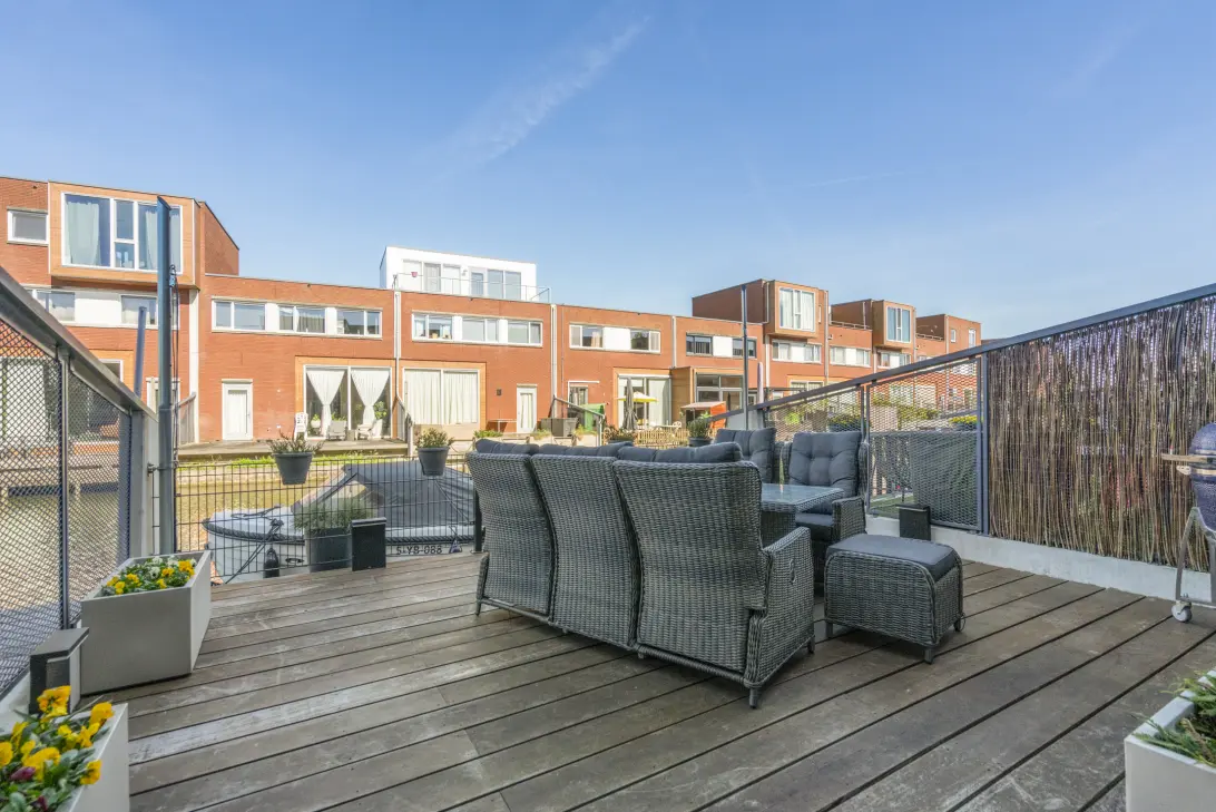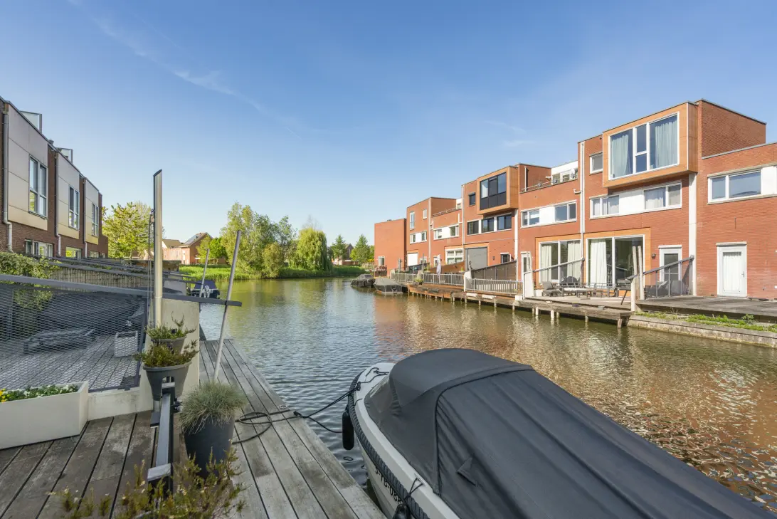Aan de voorzijde parkeer je op eigen terrein. De achtertuin ligt op het oosten en grenst aan open vaarwater – perfect voor waterliefhebbers! ’s Ochtends zon op je terras, en later op de dag verplaats je naar de voortuin of het dakterras.