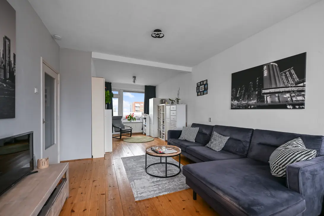 Stap binnen in dit appartement en ervaar direct de ruimte en het licht dat het biedt. De woonkamer, die enorm is dankzij de samengevoegde slaapkamer, biedt volop mogelijkheden om naar wens in te richten. Of je nu kiest voor een gezellige zithoek of een werkplek, de ruimte past zich moeiteloos aan jouw behoeften aan.
