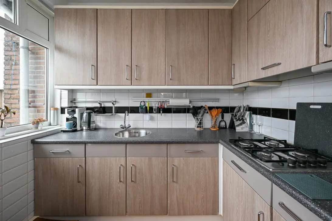 Twee balkons op noordoost en zuidwest: Met twee balkons kun je de hele dag door van de zon genieten. Begin de dag met een kopje koffie op het noordoostelijke balkon en eindig de dag met een drankje op het zuidwestelijke balkon. Deze buitenruimtes zijn perfect voor plantenliefhebbers of voor het creëren van een knusse buitenzitplek.