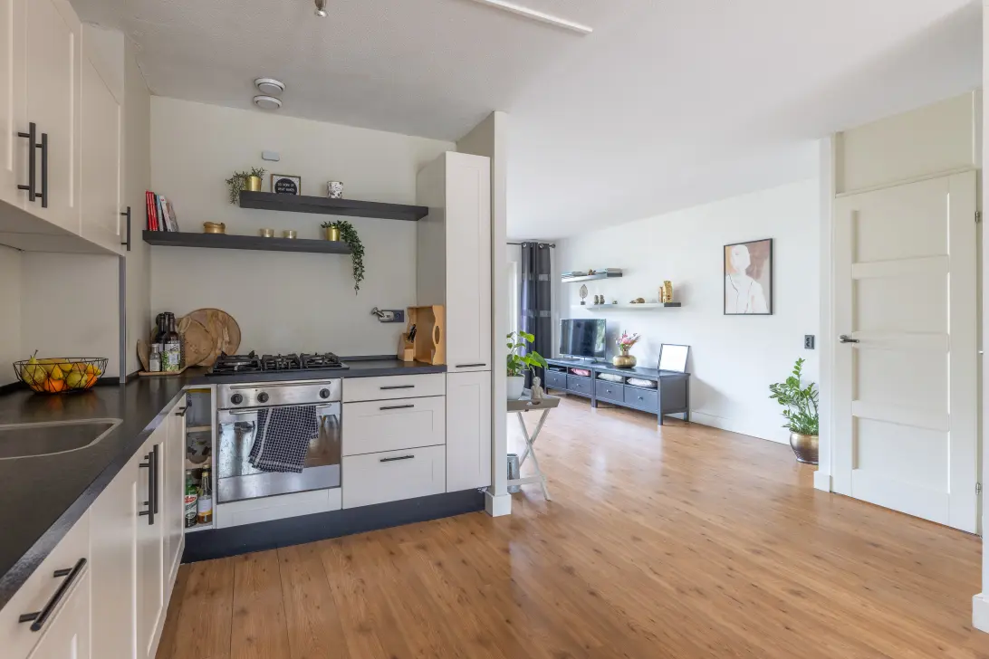 Het appartement is instapklaar en functioneel ingericht, maar kan op enkele punten nog naar eigen smaak worden aangepast of verbeterd. De woning beschikt over een lichte woonkamer met open keuken (in het midden van de woonruimte) en is voorzien van de benodigde inbouwapparatuur, zoals een koel-/vriescombinatie, vaatwasser, magnetron en een 4-pits gasfornuis met oven. De achtertuin is ruim 14 meter diep, gelegen op het oosten en bereikbaar via het achterom. Met een zonnetje op het oosten kun je meestal rekenen op ochtendzon. Met een energielabel A zorg je niet alleen voor een lage energierekening maar ook voor een comfortabel binnenklimaat.