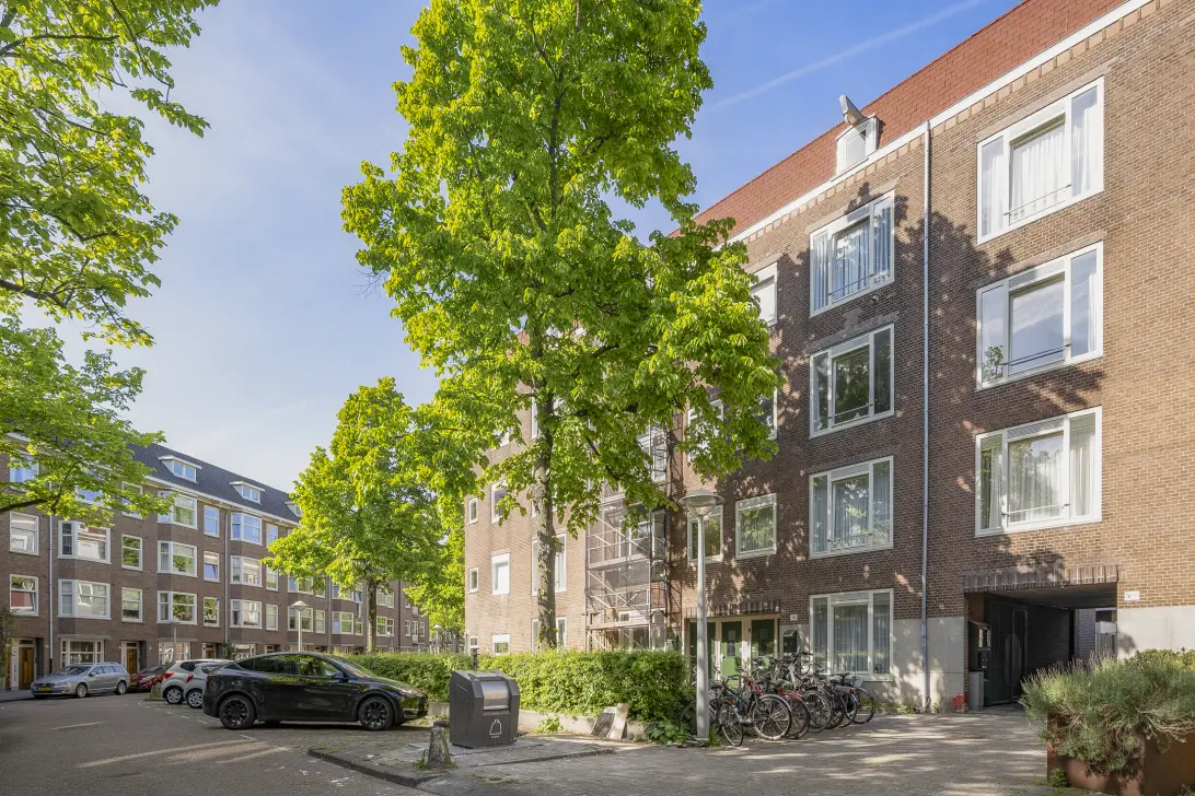 The neighbourhood offers ample sports facilities and playgrounds, including a basketball court and a Cruyff Court just around the corner, making it highly suitable for families. Several parks, such as Wibautpark, are also nearby for leisurely walks.