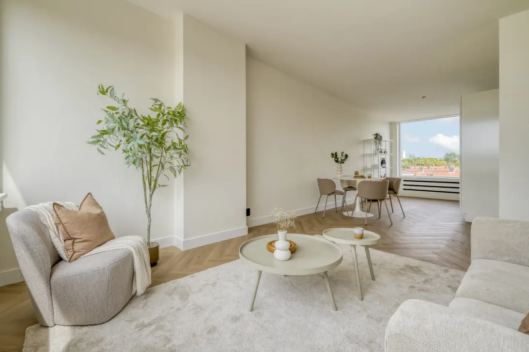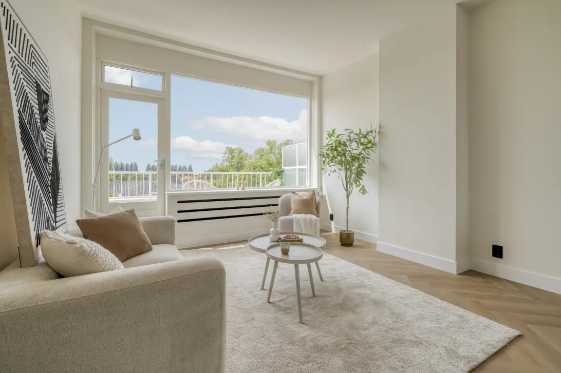 Modern and recently renovated 4-room apartment of approximately 70 m² with 3 bedrooms, located on the third and top floor of a small apartment complex. The apartment features a balcony (east-facing, morning sun) at the rear and a large sun terrace (south/west-facing, with afternoon/evening sun) at the front. It also has a private storage unit on the ground floor. The apartment is located in the popular Elsrijk district of Amstelveen, within walking distance of the city center and the (light) tram.