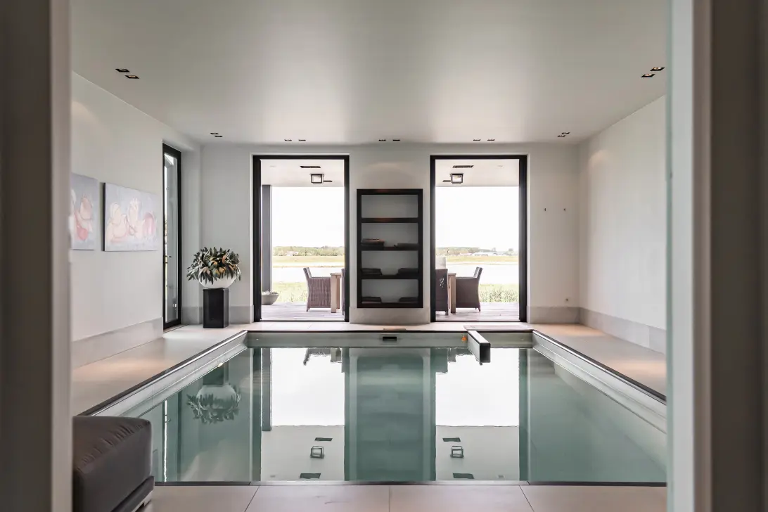 Uniek door de ligging op de begane grond is het fraaie, inpandige zwembad met openslaande deuren naar het terras. In deze ‘privé wellness’ vind je ook een sauna, toilet, douche- en relaxruimte en kun je door het ‘binnen buiten’ gevoel er in alle jaargetijden optimaal van genieten; ook hier weer het ultieme hotelgevoel.