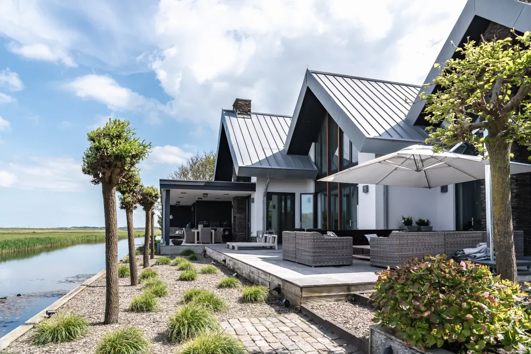 Door de vrije ligging aan het natuurgebied en de fantastische zonligging (middag en vroege avond zon) zijn de buitenruimtes minstens zo geliefd en veel gebruikt als de binnenruimtes. Het royale vlonder terras met open haard en diverse zit- en relaxplekken, ideaal om te genieten van het buitenleven, geven een groot gevoel van rust en privacy.