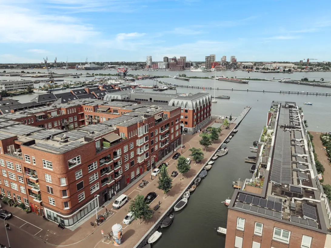 The location is ideal: Central Station is just a 10-minute bike ride away, and the A10 motorway is just a few minutes away by car. There are also plenty of cycling and walking routes along the water – perfect for relaxing or commuting.