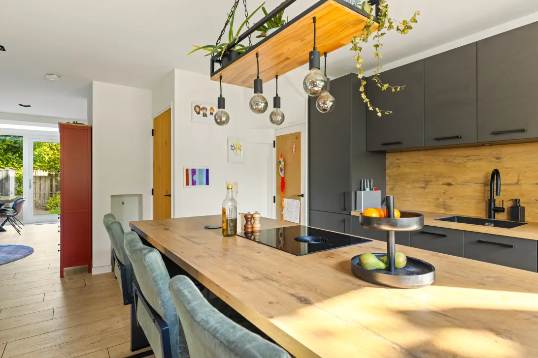 Zoals al verteld hoeft u aan deze woning niets te doen. De keuken (2023) is luxe uitgevoerd met een o.a. een kookeiland, zitbar, 2 keukenunits aan de wand en uiteraard voorzien van alle denkbare apparatuur. De woonkamer is uitgebouwd, speels ingedeeld, geeft toegang tot de tuin met een schuifpui en een lichtstraat zorgt voor extra lichttoetreding.