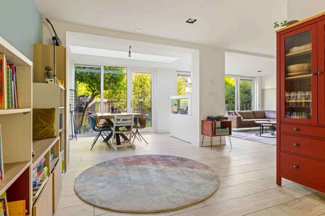 It’s not often that a move-in-ready home becomes available in this part of the neighborhood—one that requires absolutely no work. This spacious 6-room house, featuring an extended living room (2023), garage, rooftop terrace, and large garden, has been largely renovated and modernized in recent years. At the front, there’s an unobstructed view of a strip of greenery with a canal and beyond that, open waterways. Most residents have a small boat moored there. So you can step straight from your home into your own boat—or lace up your skates in the winter.