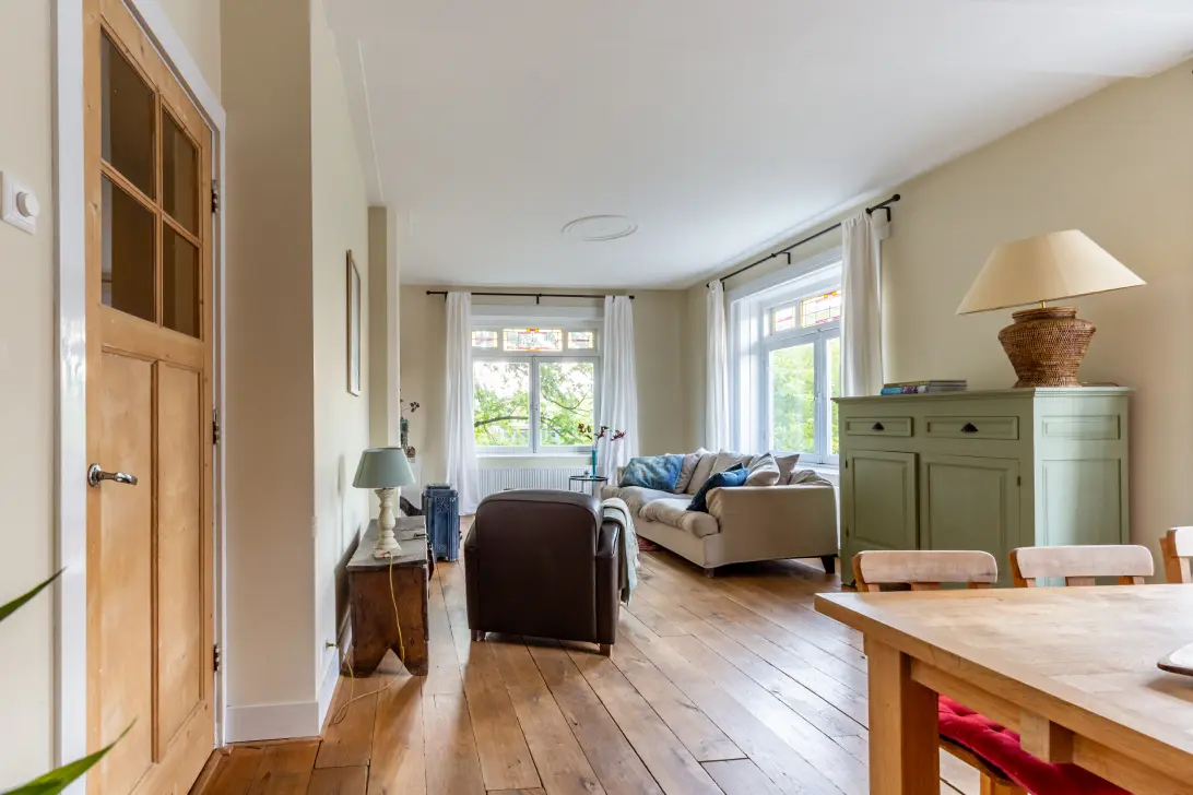 Rijnsburgstraat 34-3 is an attractive and light apartment on the third and top residential floor of a characteristic building. The apartment offers two bedrooms, many windows all around, stained-glass upper windows, a spacious storage room directly above the apartment, and an additional storage inside. Located on freehold land with an active and professionally managed owners’ association.